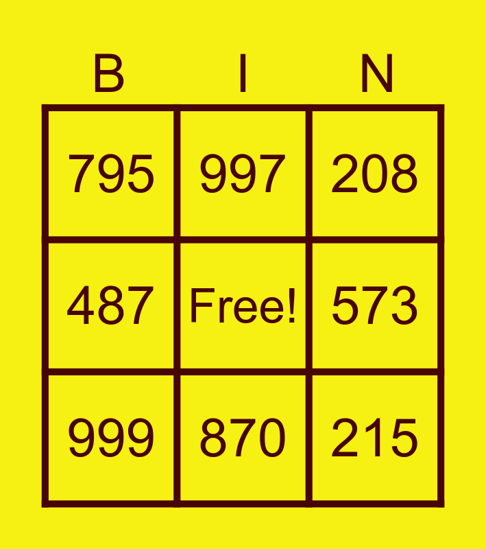 This bingo card has a free space and 28 words: BINGO BAKER, 335, 329, 578, 573, 208, 997, 503, 610, 713, 982, 487, 525, 636, 388, 247, 823, 999, 870, 533, 795, 589, 280, 346, 516, 751, 215 and 420.