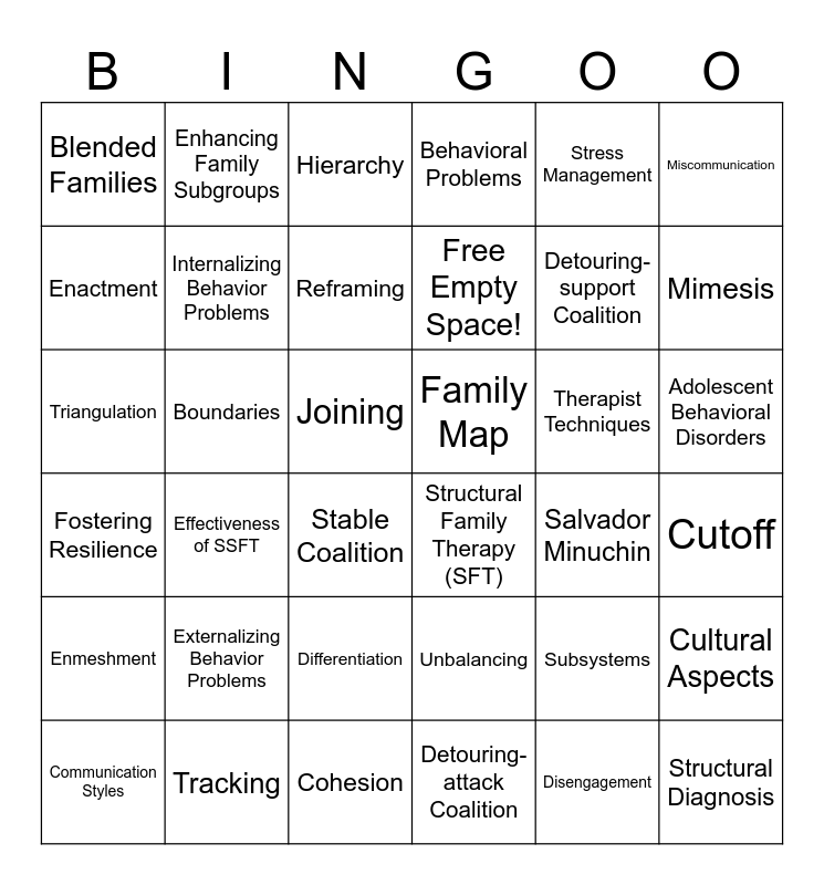 Structural Family Therapy | Structural Family Therapy Bingo | Therapy and Treatment | Theory Bingo | Theory Bingo