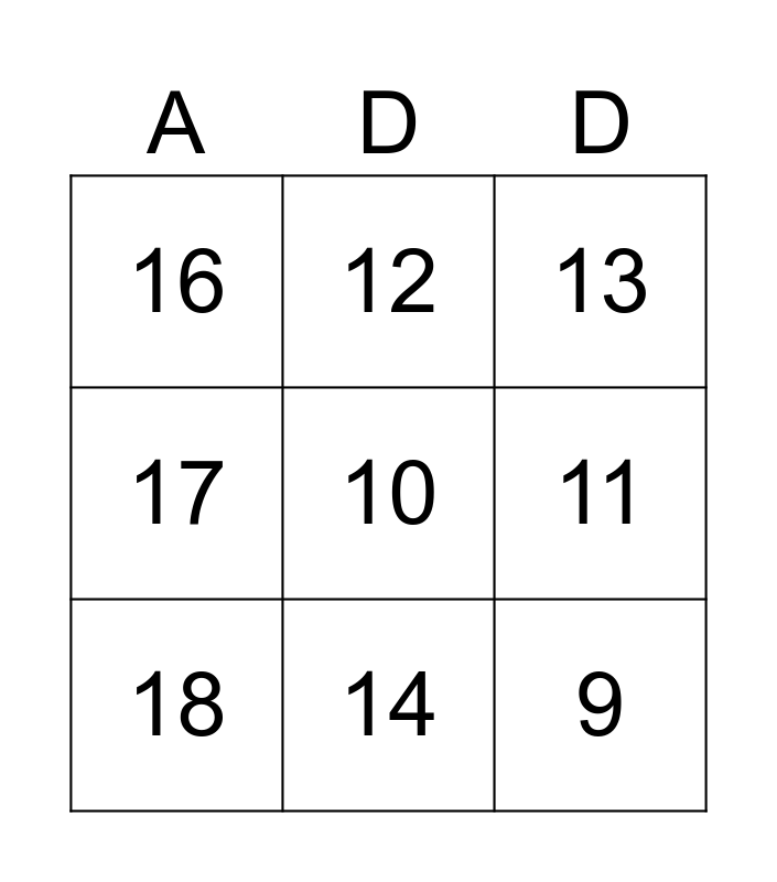 This bingo card has 12 words: 8, 9, 10, 11, 12, 13, 14, 15, 16, 17, 18 and 19.