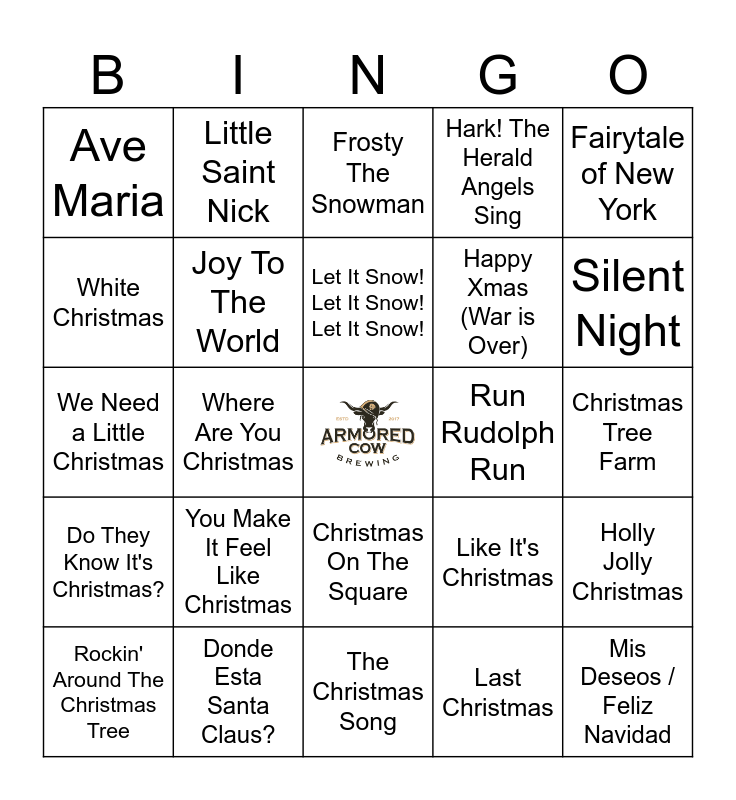 This bingo card has a free space and 60 words: What A Wonderful World, Donde Esta Santa Claus?, What Christmas Means To Me, Do They Know It's Christmas?, Last Christmas, Jingle Bell Rock, Joy To The World, All I Want For Christmas Is You, Happy Xmas (War is Over), O Holy Night, Hark! The Herald Angels Sing, You're A Mean One, Mr. Grinch, White Christmas, Christmas Is, O Come, All Ye Faithful, Ave Maria, Mis Deseos / Feliz Navidad, Fairytale of New York, Santa Baby, Let It Snow! Let It Snow! Let It Snow!, Run Rudolph Run, Frosty The Snowman, Rockin' Around The Christmas Tree, Holly Jolly Christmas, Winter Wonderland, Carol of the Bells, Blue Christmas, Twelve Days of Christmas, Silent Night, Colorado Christmas, Father Christmas, Wonderful Christmas, Deck The Hall, Mele Kalikimaka, Little Saint Nick, Snowman, Merry Christmas, Happy Holidays, Where Are You Christmas, I Saw Mommy Kissing Santa Claus, We Need a Little Christmas, It's Beginning to Look a Lot like Christmas, You Make It Feel Like Christmas, Christmas Tree Farm, Santa Tell Me, Like It's Christmas, Not Another Christmas Song, DJ Play A Christmas Song, Bring Me Love, Oh Santa!, Christmas On The Square, The Christmas Song, Little Drummer Boy, 8 Days of Christmas, Baby It's Cold Outside, Auld Lang Syne, I Am the Grinch, Santa Claus Is Comin' to Town, It's Christmas Time, Maybe This Christmas and Christmas In Harlem.