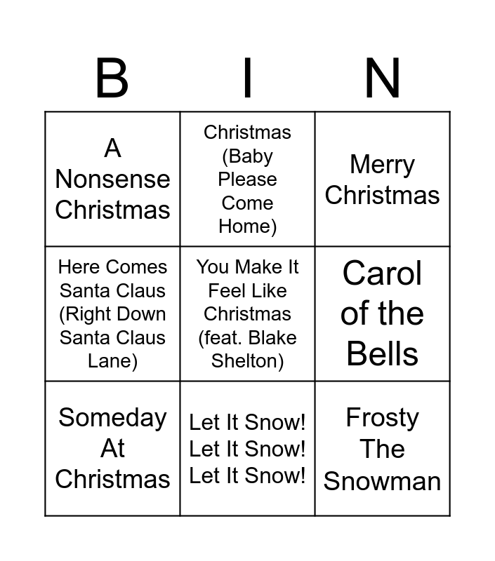 ⚠ This card has duplicate items: Last Christmas (2), Sleigh Ride (2), Let It Snow! Let It Snow! Let It Snow! (2), Christmas (Baby Please Come Home) (2)