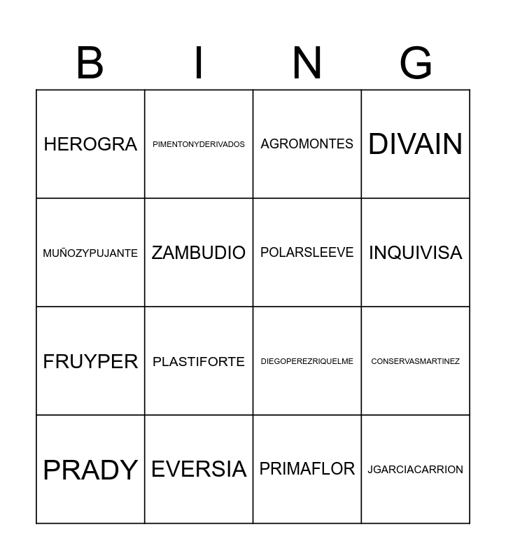 This bingo card has 43 words: SERMUCO, PRADY, KERNEL, TAHE, PROBELTE, ELPOZO, AGROMONTES, ASA, MUÑOZYPUJANTE, NEOQUIM, DIVAIN, EVERSIA, PEDANEO, CAMPOSEVEN, BASTIDA, PROQUIMOL, SORGRAF, DIEGOPEREZRIQUELME, VICTORIAMIXED, PLASTIFORTE, PIMENTONYDERIVADOS, JAUJA, ELDULZE, HEROGRA, MOCITOS, PRIMAFLOR, MONTBRU, AROMAIBERICA, COLLAK, JGARCIACARRION, RUBIDICOL, OLIVARES, CONFILETAS, CONSERVASMARTINEZ, SANMARCOS, LAHUERTANA, ILORCITANADEMARMOLES, INQUIVISA, ZAMBUDIO, FRUYPER, AMC, POLARSLEEVE and AQUAPOOL.
