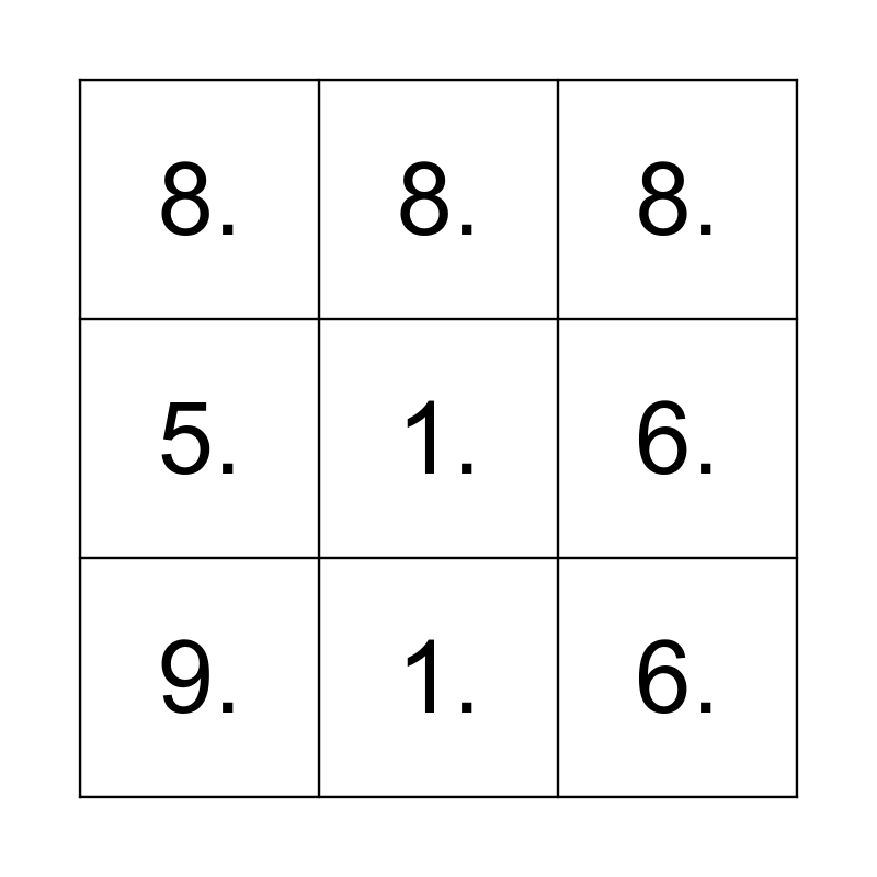 ⚠ This card has duplicate items: 1. (12), 2. (12), 6. (12), 4. (12), 5. (12), 9. (12), 7. (12), 8. (12), 3. (11)