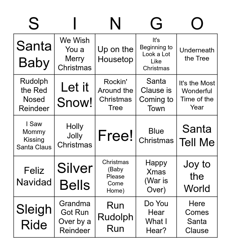 Holiday Song Bingo | Christmas Bingo | Christmas Songs Bingo | Christmas | Christmas Singo Bingo