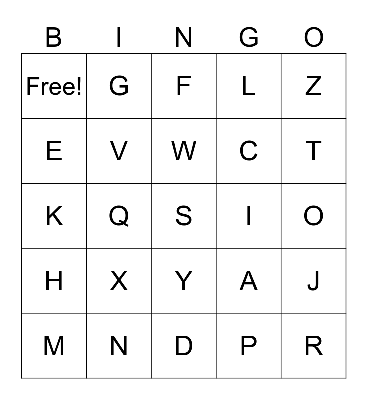 This bingo card has a free space and 27 words: A, B, C, D, E, F, G, H, I, J, K, L, M, N, T, U, V, W, X, Free!, O, P, Q, R, Y, Z and If You’re Happy and You Know It.