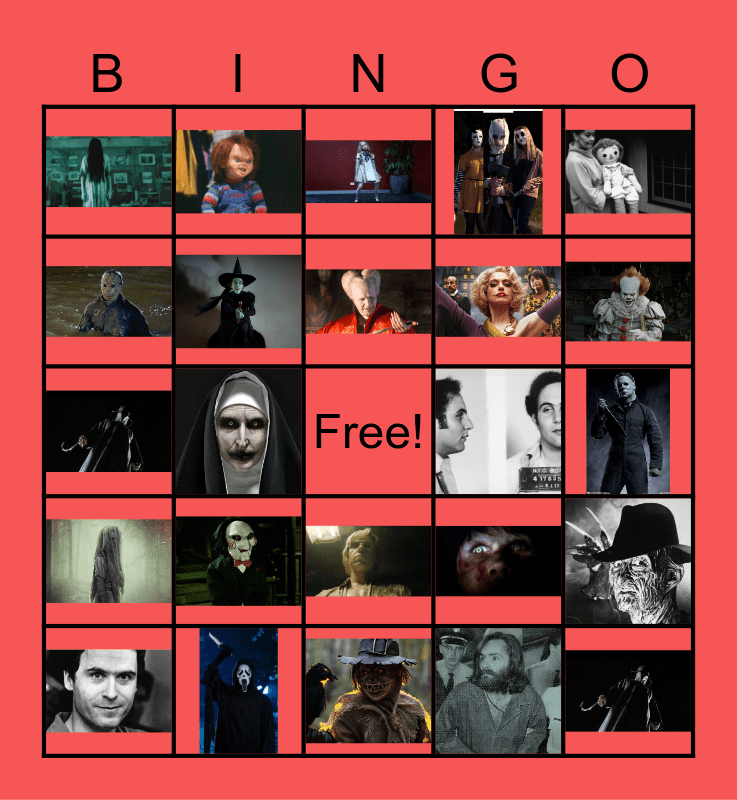 This bingo card has 24 images and a free space.