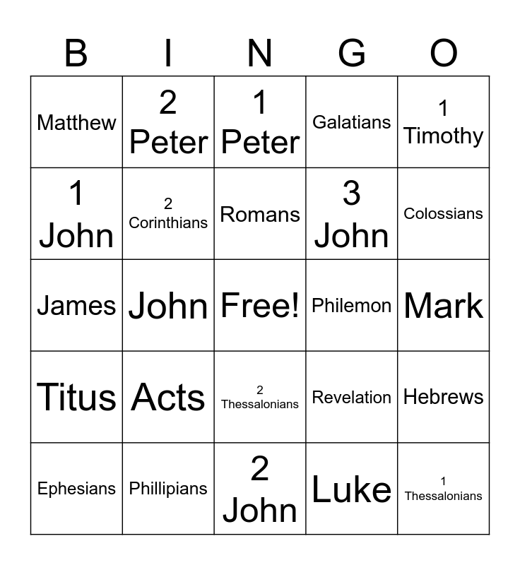Books of the New Testament | Books of the New Testament | Books of the New Testament | Bible Bingo | New Testament