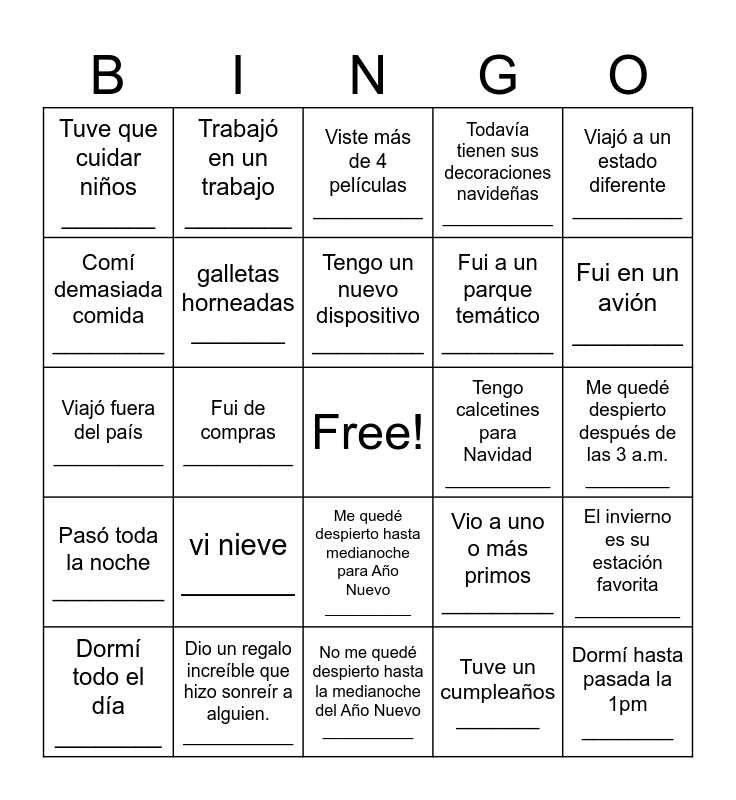 Durante las vacaciones de invierno... Encuentra a alguien que... | BingOpinno | Mi Descanso de Verano | ¿Qué hiciste durante el fin de semana? | Vacaciones invernales