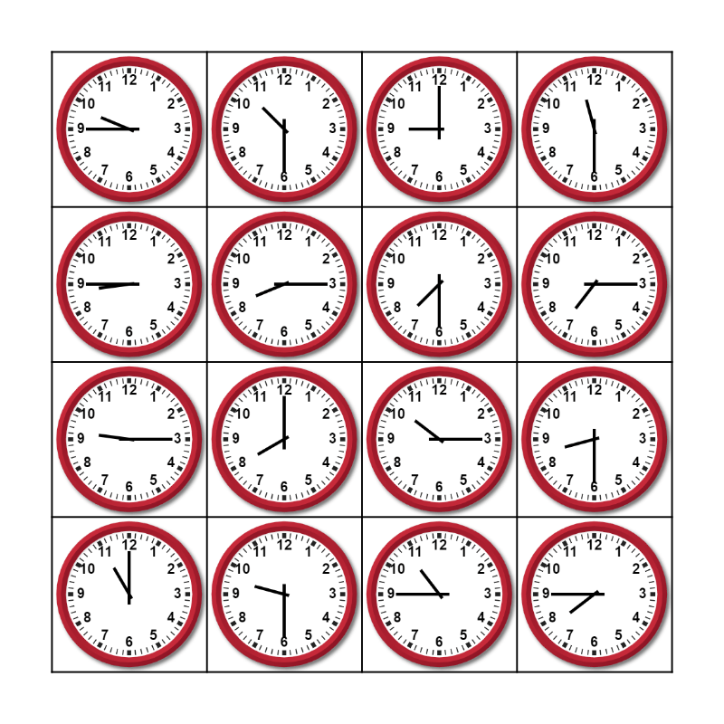 Telling Time Bingo Card