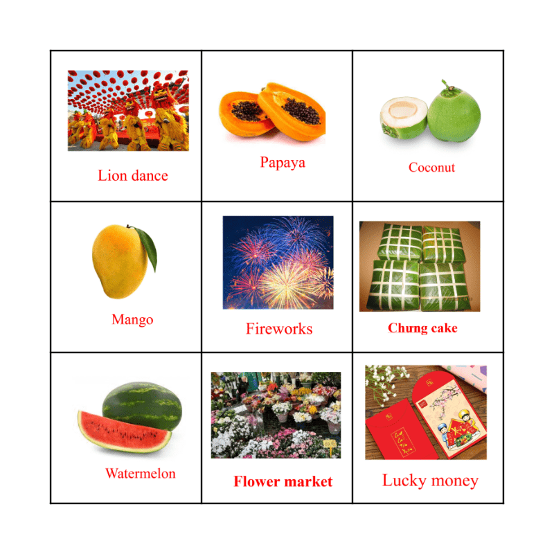 This bingo card has 8 images and a free space.