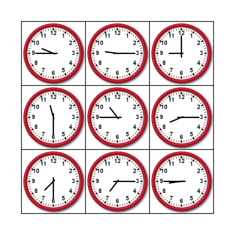 Telling Time Bingo Card