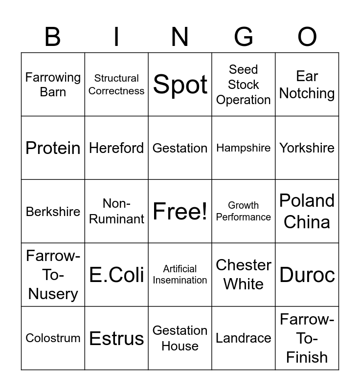 Swine Breeds Terms | Swine Production | Swine Bingo | PIG-IO | Mammals