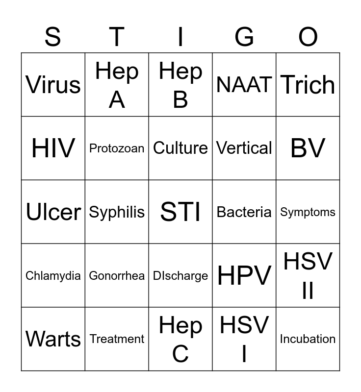 STI Bingo | STI Bingo | ICNG- O! | MICROBIOLOGY BINGO | CNA 2 Bingo