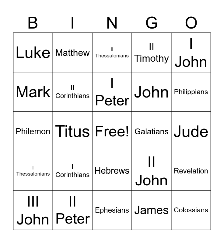 Books of the New Testament | Books of the New Testament | Books of the New Testament | New Testament Bingo | NEW TESTAMENT BINGO