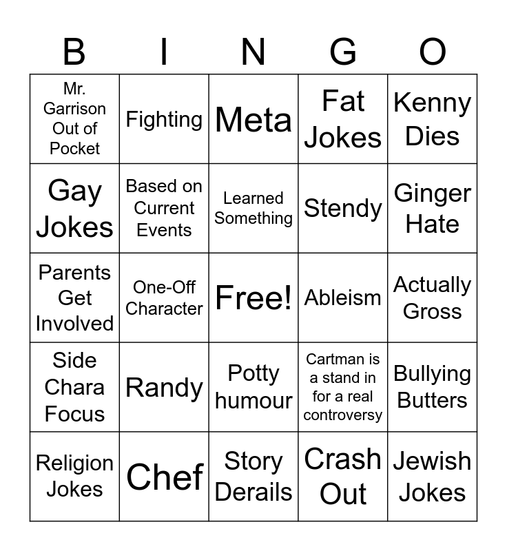 South Park Bingo! | Butters Big Beautiful BINGO Bonaza | south park bingo | South Park Bingo | South Park