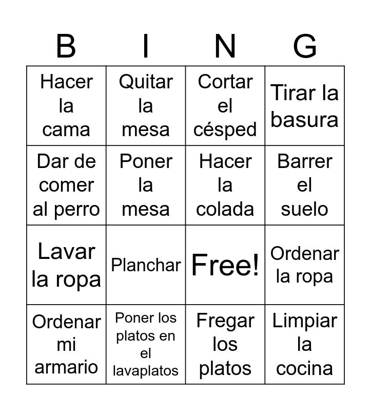Tener que los quehaceres | Tener que los quehaceres | ¡Lotería! Los quehaceres vocab | Tener que los quehaceres | Tener que los quehaceres