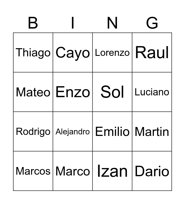 This bingo card has 55 words: Free!, Xavier, Vale, Thiago, Teo, Sergio, Sol, Santiago, Rodrigo, Rio, Raul, Rafael, Nicolas, Nilo, Maximo, Matias, Mateo, Martin, Mino, Marcos, Marco, Luca, Leo, Lorenzo, Leandro, Luciano, Julen, Joaquin, Izan, Inigo, Hugo, Gael, Fernando, Francisco, Enzo, Emilio, Esai, Dario, Diego, Cruz, Cayo, Cesar, Canyon, Biel, Bastien, Arnau, Andres, Antonio, Alvaro, Alejandro, Aleix, Alberto, Arlo, Angel and Augustin.