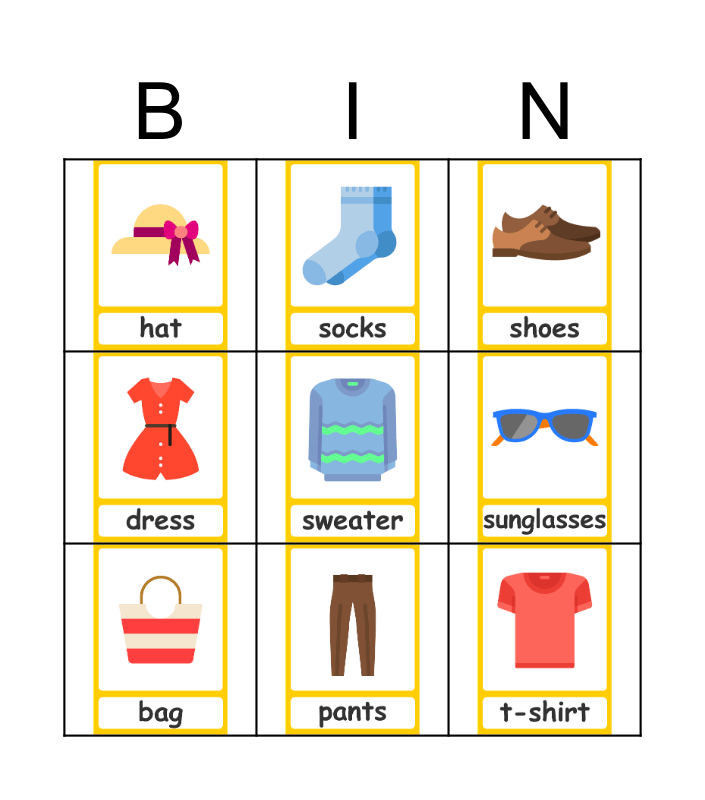 Clothes and Accessories Bingo | Family | Halloween Bingo | clothes | Animals on the move! (Young achievers unit 4)