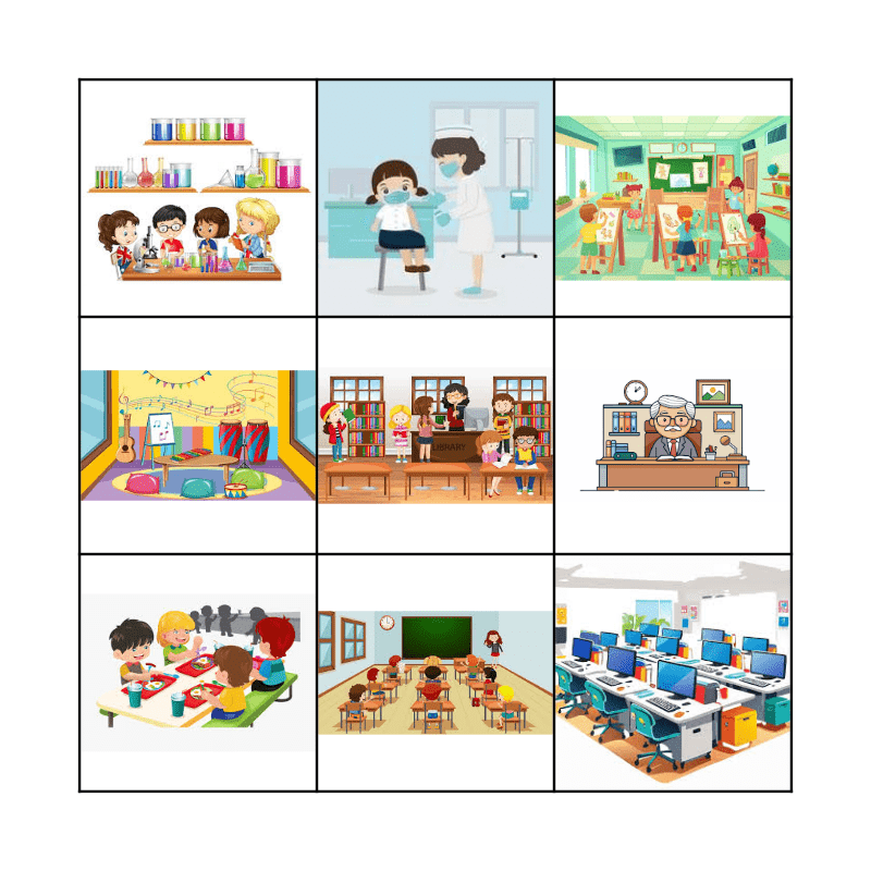 This bingo card has 8 images and a free space.