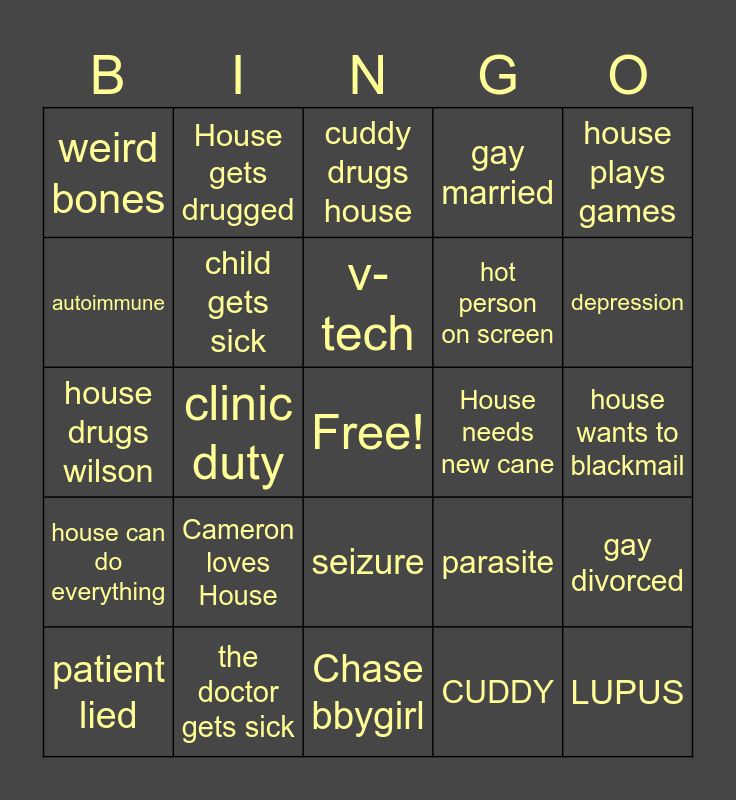 Dr. House Bingo | epilepsy | HOUSE MD | House Bingo | House Bingo