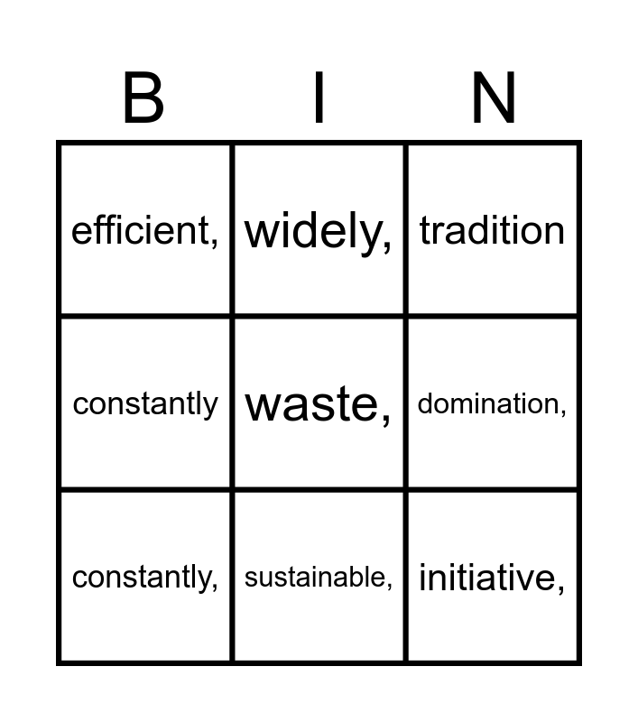 This bingo card has 53 words: diversity,, endangered,, various,, candidate,, significant,, approximately,, widely,, estimated,, domination,, embrace,, constantly,, population,, tradition,, skeptical,, substantial,, features,, sustainable,, extinct,, benefits,, waste,, platform,, recycling,, initiative,, efficient,, incentive,, awareness,, diversity, endangered, various, candidate, approximately, widely, estimated, domination, significant, embrace, constantly, population, tradition, skeptical, substantial, features, sustainable, extinct, benefits, waste, platform, recycling, initiative, efficient, incentive, awareness and essential.