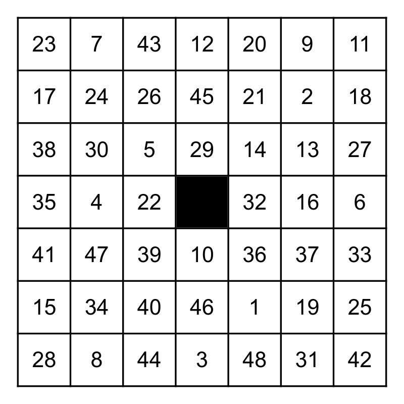 This bingo card has a free space and 48 words: 1, 2, 3, 4, 5, 6, 7, 8, 9, 10, 11, 12, 13, 14, 15, 16, 17, 18, 19, 20, 21, 22, 23, 24, 25, 26, 27, 28, 29, 30, 31, 32, 33, 34, 35, 36, 37, 38, 39, 40, 41, 42, 43, 44, 45, 46, 47 and 48.