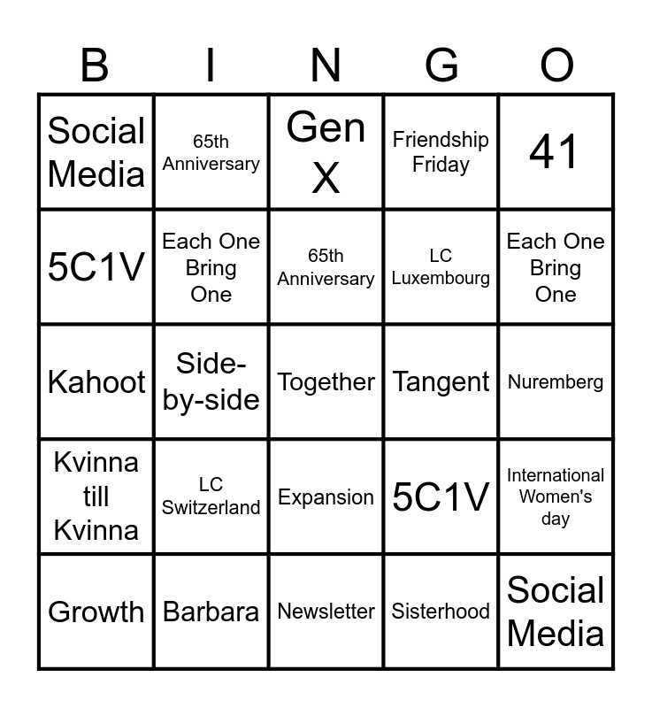 ⚠ This card has duplicate items: Regional Chair (2), Nuremberg (2), Stratford-Upon-Avon (2), MTM (2), Circler.World (2), LCI (2), Lady (2), Friendship (2), One team, One dream (2), Friendship Friday (2), Number Exchange Clubs (2), AGM Raffle (2), Barbara (2), HYR (2), LC Romania (2), LC Luxembourg (2), LC GBI (2), LC Germany (2), LC Belgium (2), LC Austria (2), LC Switzerland (2), LC The Netherlands (2), Round Table (2), Agora (2), Tangent (2), 41 (2), 5C1V (2), Bingo (2), Ticket (2), Side-by-side (2), Social Media (2), Youth Engagement (2), Expansion (2), Sisterhood (2), 65th Anniversary (2), International Women's day (2), Charity March (2), ISP (2), Kvinna till Kvinna (2), Lava (2), CEER project (2), Kahoot (2), Growth (2), Each One Bring One (2), Gen X (2), Kindness (2), Difference (2), Travel fund (2), Newsletter (2)