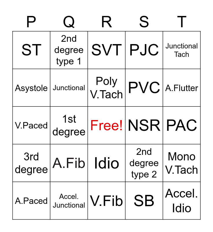 Basic EKG Bingo | TeleBingo | EKG Bingo | EKG BINGO | EKG Bingo