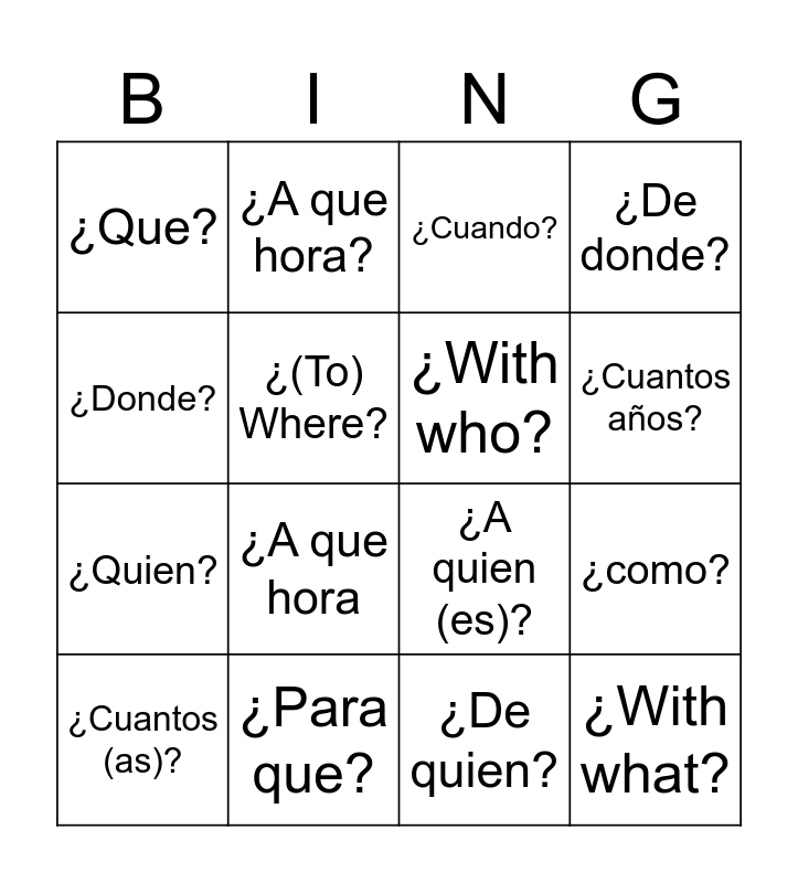 Question Words | Club de Español! | Bingo | Bingo | Spanish Words Bingo