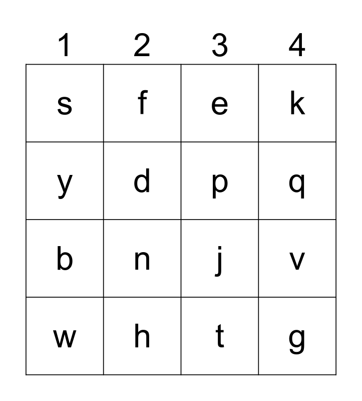 This bingo card has 27 words: Free!, a, b, c, d, e, f, g, h, i, j, k, l, m, n, o, p, q, r, s, t, u, v, w, x, y and z.