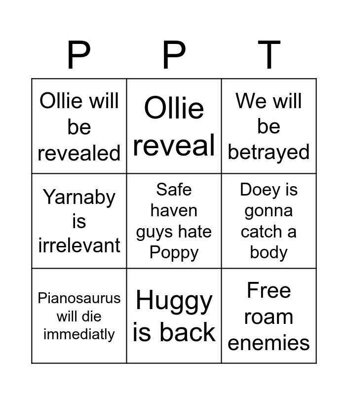 ppt4 | Poppy Playtime Chapter 4 Bingo | Poppy Playtime chapter 4 bingo card | Poppy Playtime Chapter 3 | Chapter 5 bingo