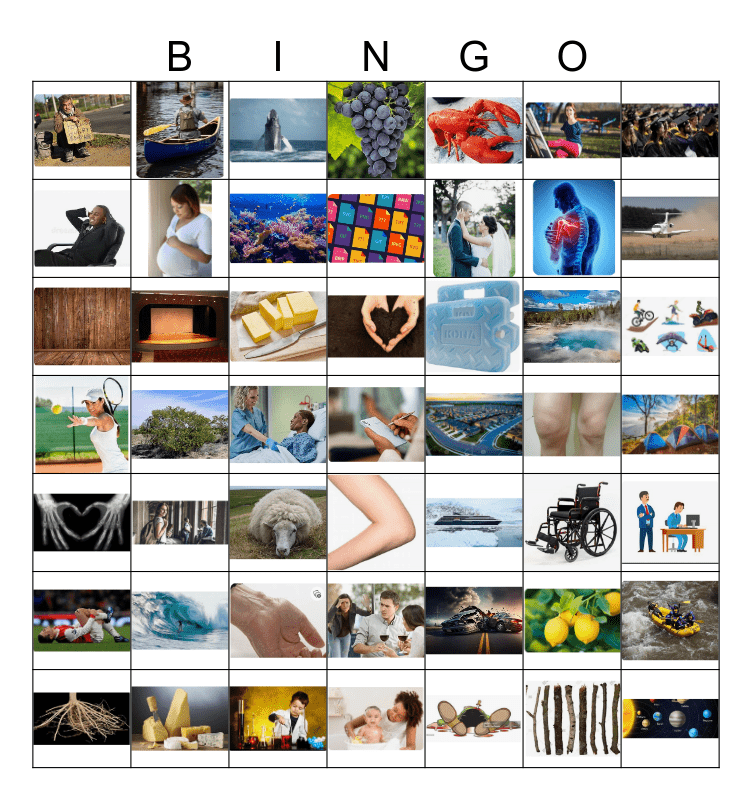 This bingo card has 48 images and a free space.