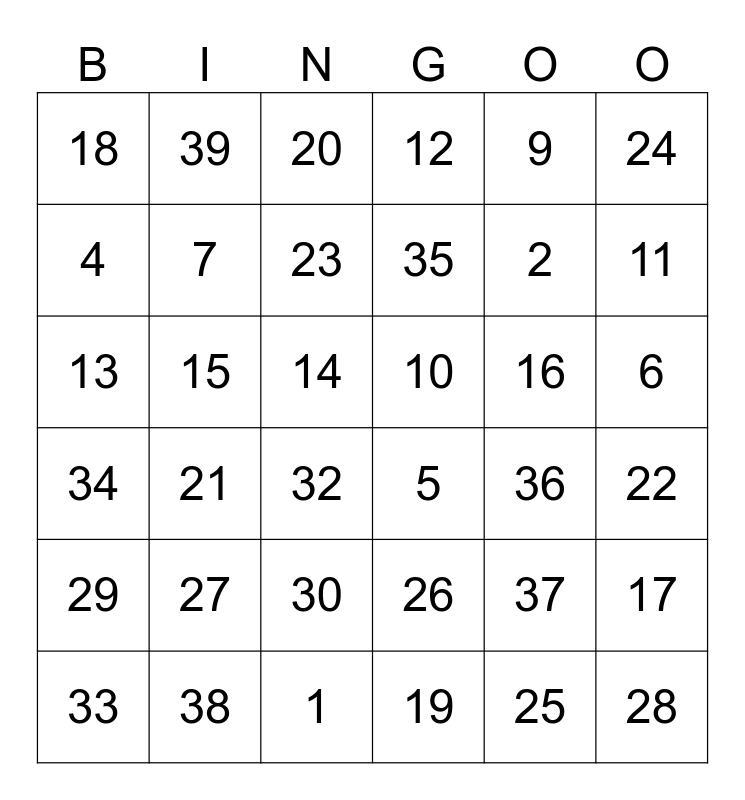 This bingo card has 40 words: 1, 2, 3, 4, 5, 6, 7, 8, 9, 10, 11, 12, 13, 14, 15, 16, 17, 18, 19, 20, 21, 22, 23, 24, 25, 26, 27, 28, 29, 30, 31, 32, 33, 34, 35, 36, 37, 38, 39 and 40.