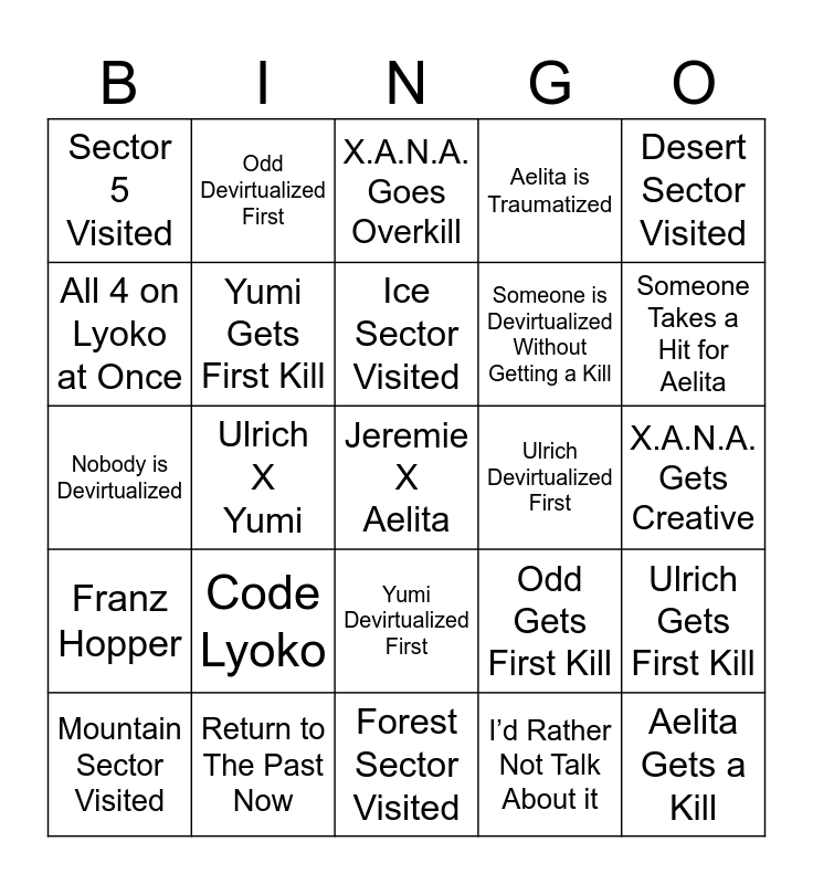 Code Lyoko Season 2 Bingo | Code Lyoko Season 1 Bingo | Code Lyoko Season 2 Bingo | Code Lyoko Bingo | Code Lyoko Bingo