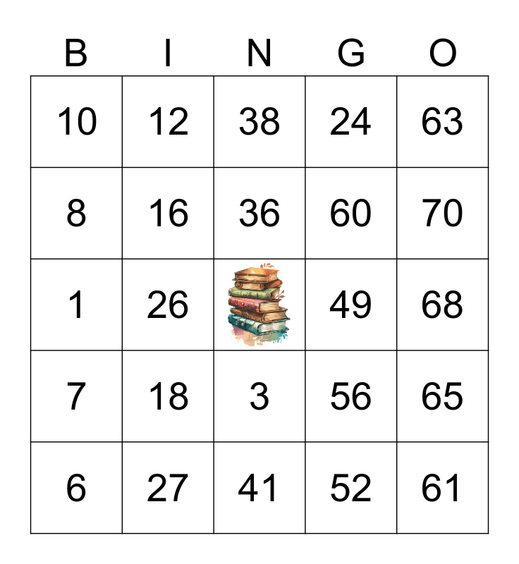 This bingo card has a free space and 29 words: 2, 27, 38, 50, 63, 10, 16, 36, 49, 65, 6, 26, 52, 61, 1, 28, 41, 56, 70, 7, 18, 32, 60, 68, 8, 12, 3, 24 and 43.