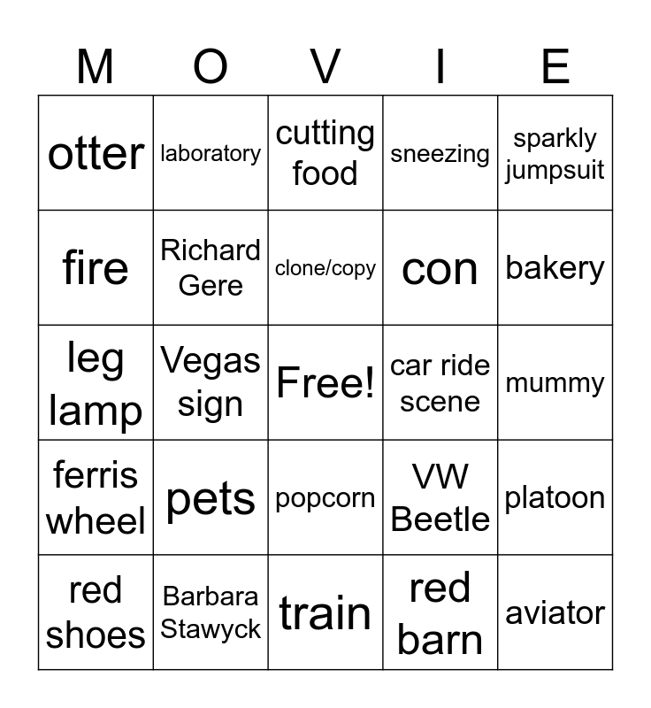 This bingo card has a free space and 249 words: ✝️, ❤️, 🌟 star, 4 stars, a fart, a judge, a kiss, acdc, airplane, Al Pacino, alarm clock, American flag, Andie McDowell, army, art, art cartoon people, ATM, aviator, baby grand piano, bakery, balloons, banana, bandages, Bank, Barbara Stawyck, battle, behind the scene, Bell ringing, bicycle, big slide, binoculars, Black & white movie, blue eyes, books, border, boxing glove, bread & wine, bridge, bubble bath, butterflies, car ride scene, casket, castle, chains, christmas tree, Christmas turkey, cigar, cigar, Cindy Lou Who, city morgue, clipboard, clone/copy, Coffin, con, construction, countdown, Court, cowboy boots, cowboy hat, curse, cutting food, dancing, dancing, dancing, Dayo song, deer, dentist, dice, dice, dictionary, disc jocky, doodling, Doris Day, dragon, DreamWorks, drill Sargent, drum solo, duck, elephant, evil villian, falling in love, ferris wheel, fire, fire hydrant, fireplace, flying sleigh, footprints, fork, Frank Sinatra, fruit basket, funeral, golfing, golfing, Green fur, grocery store, gun belt, guy time, hand radio, handcuffs, harp, haunted, having principles, helicopter, Henry Ford, Henry Winkler, Hitchcock, horses, hostages, imprinting, Jack Lemon, jello mold, kayak, Kevin Bacon, knife in the back, kryptonite, laboratory, lace curtain, lasers, lasso, lava, left behind/abandoned, leg lamp, letters, life vest, limo, log cabin, London, man in a box, Marching, marriage, marshmallow, meditation, melted credit card, merry go round, miniature village, mink coat, morgue, motorcycle, moving men, mummy, musical, musical conductor, musical note 🎶, mustache, nature vs tech, navy ship, neon lights, newspaper, NY skyline, old west wagon, on the phone, opossum, orange juice, otter, panda, Paramount, park bench, party, pets, photograph, pig, pillow throw, pizza, planes, platoon, playing the piano, pocket hankies, pocket watch, Police car, popcorn, potted flowers, purple, racoon hat, railroad, reading a newspaper, red barn, red car, red carnation, red hair, red shoes, reindeer, Richard Gere, rickshaw, riding a horse, rifle, rooster, rubber duck, running, Ryan Reynolds, sailors, Sam Elliot, Santa, script, secret, Sega, shoot out, showgirl, silent film, silent scream, silent shout out, singing plant, skateboard, slap stick, sleigh, smoking, sneezing, snow falling, snowfall, soap on mouth, sparkly jumpsuit, speed, squeaky voice, stage, stairs, Steve Martin, subway, sunglasses, super hero, superman logo, suspenders, T-Bird, table lamp, tennis ball, tennis ball, theater, theft, Tim Burton, time warp, top hat, torches, tractor, train, train whistle, trash can fire, triple dog dare, trombone, underwear, uniform, union army, Vegas sign, venus fly plant, VW Beetle, walking cane, wall of glasses, Warner Bro (WB), western, Whoville, windmill and yellow carnation.