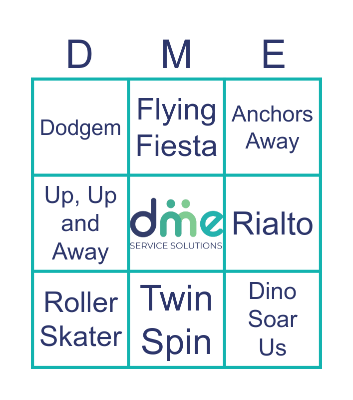 This bingo card has a free space and 20 words: Agila the EKsperience, Air Race, Anchors Away, Bouncing Boulder, BumpNSplash, Dino Soar Us, Disk-O-Magic, Dodgem, EKstreme Tower, Flying Fiesta, Fun Kart, Jungle Log Jam, Rialto, Rio Grande Rapids, Roller Skater, The Grand Carousel, Twin Spin, Up, Up and Away, Space Shuttle and Swan Lake.