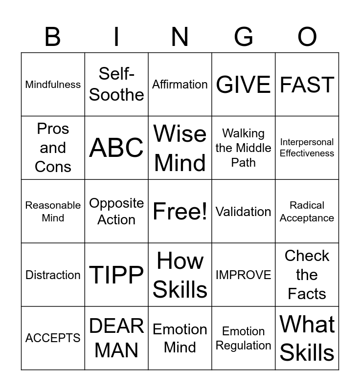 DBT Skills Bingo! | DBT Bingo | DBT Skills Bingo! | DBT Skills Bingo! | DBT Skills Bingo!