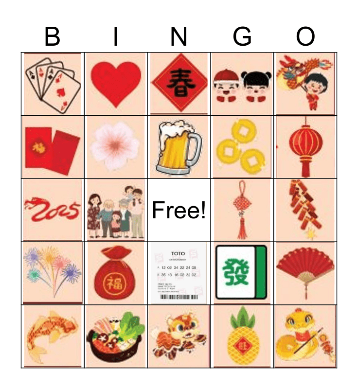 This bingo card has 24 images and a free space.