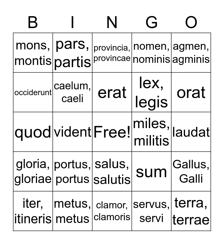 LATIN | Latin Bingo | Nom, Accusative 4th and 5th | Latin III | Latin Vocab