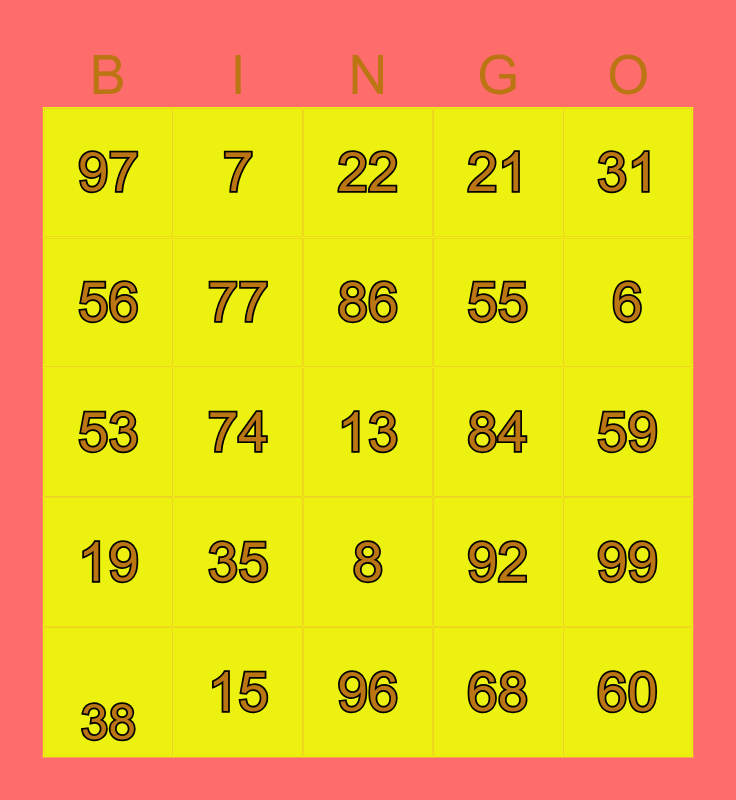 This bingo card has 102 words: 1, 16, 31, 46, 61, 2, 17, 32, 47, 62, 3, 18, 34, 48, 63, 4, 19, 33, 49, 64, 5, 20, 39, 50, 65, 6, 21, 35, 51, 66, 7, 22, 36, 52, 67, 8, 23, 37, 53, 68, 9, 24, 38, 54, 69, 10, 25, 55, 70, 11, 26, 40, 56, 71, 12, 27, 41, 57, 72, 13, 28, 42, 58, 73, 14, 29, 43, 59, 74, 15, 30, 44, 60, 75, 45, 76, 77, 78, 79, 80, 81, 82, 83, 84, 85, 86, 87, 88, 89, 90, 91, 92, 93, 94, 95, 96, 97, 98, 99, 100, 101 and 102.