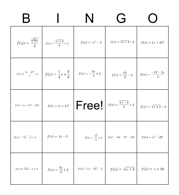 MATH-INGO | PUSHEENS MATH BINGO | Calculus 1 Final Review BINGO | Inverse Functions | Inverse Functions (Q/A)