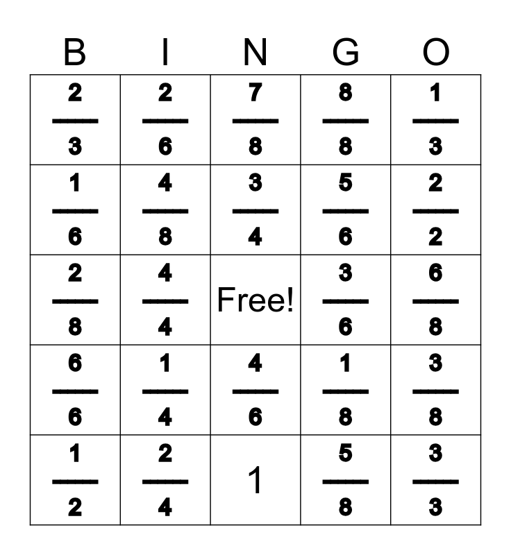 This bingo card has a free space and 24 words: 1 ------ 4, 2 ------ 4, 3 ------ 4, 1 ------ 2, 1 ------ 3, 2 ------ 3, 1 ------ 6, 2 ------ 6, 3 ------ 6, 4 ------ 6, 5 ------ 6, 2 ------ 8, 1 ------ 8, 3 ------ 8, 4 ------ 8, 5 ------ 8, 6 ------ 8, 7 ------ 8, 2 ------ 2, 4 ------ 4, 3 ------ 3, 6 ------ 6, 8 ------ 8 and 1.