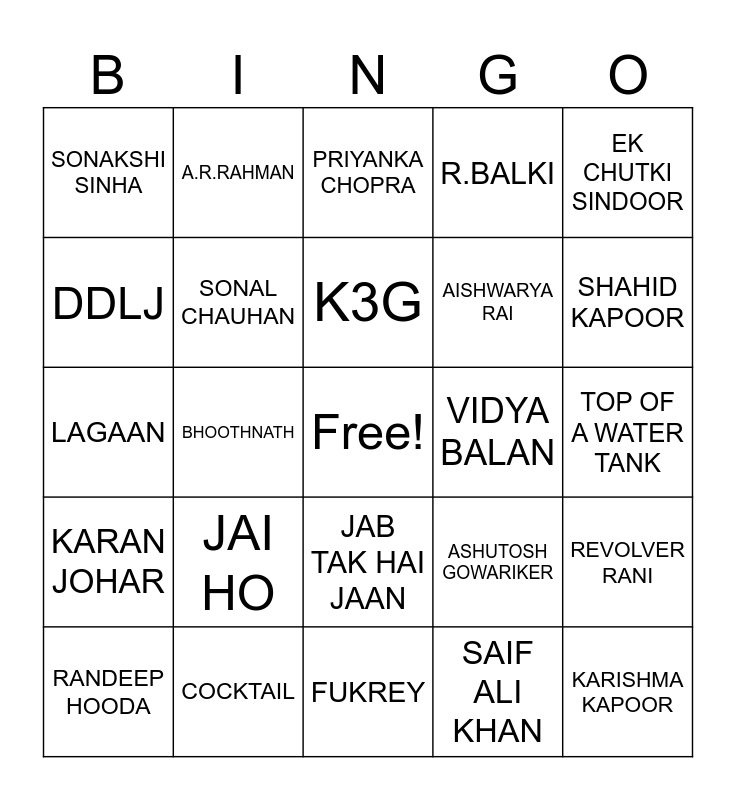 Bollywood | Bollywood | Bollywood | Movie Bingo | Bollywood Bingo