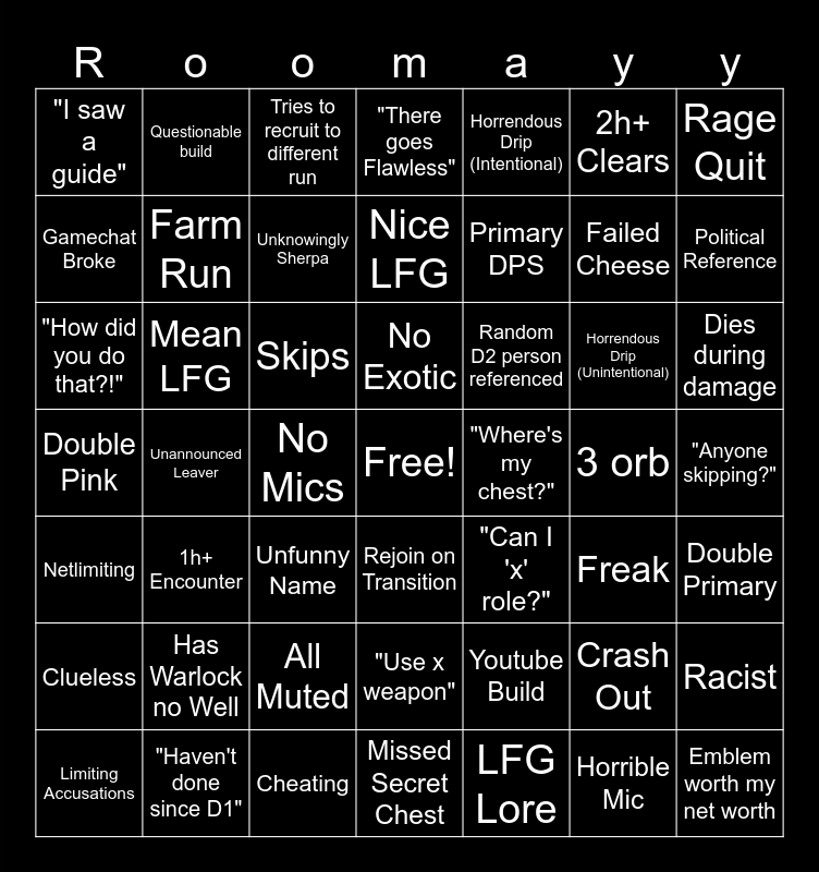 Ruomei LFG Bingo | LFG Bingo | Destint 2 Dungeon | LFG Bingo | LFG BREAD