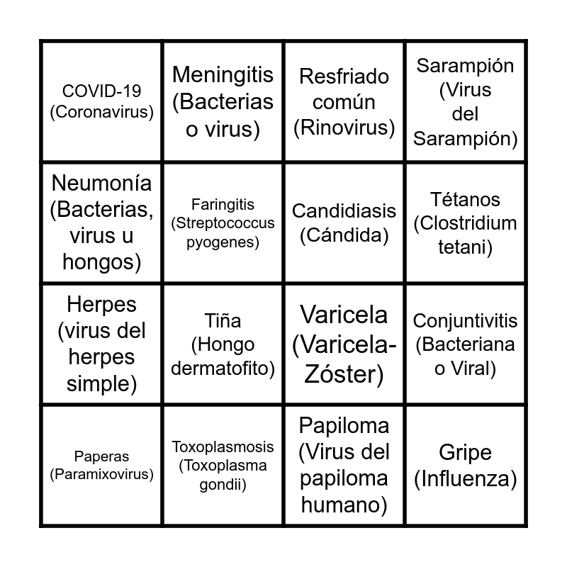 Bingo de enfermedades infecciosas | Infecciones | Bingo de Inmunización | GOTOPOSVIRULIENTOS | Infecciones