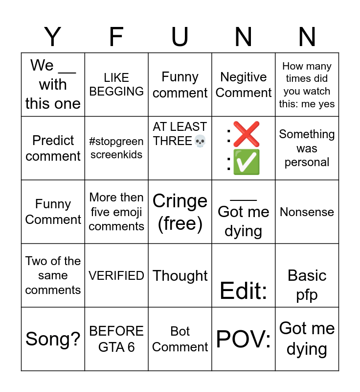 YT COMMENTS | YT Shorts Bingo | Youtube Shorts Comments | YT Shorts comment bingo | YouTube Shorts Comment Bingo