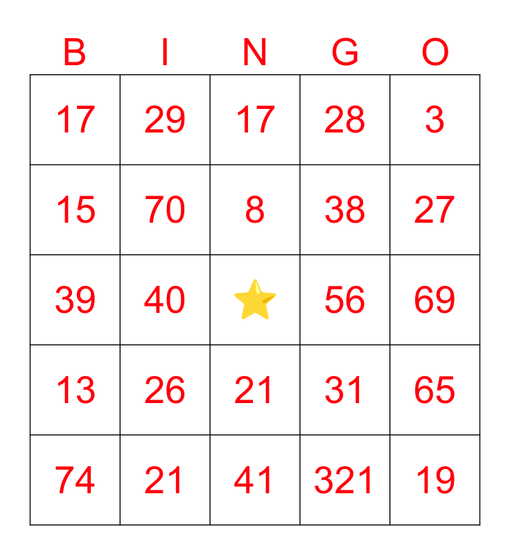 This bingo card has a free space and 106 words: 1, 2, 3, 4, 5, 6, 7, 8, 9, 10, 11, 12, 13, 14, 15, 16, 17, 18, 19, 20, 21, 22, 23, 24, 25, 26, 27, 28, 29, 30, 31, 321, 2, 3, 4, 5, 6, 7, 8, 9, 10, 11, 12, 13, 14, 15, 16, 17, 18, 19, 20, 21, 22, 23, 24, 25, 26, 27, 28, 29, 30, 31, 32, 33, 34, 35, 36, 37, 38, 39, 40, 41, 42, 43, 44, 45, 46, 47, 48, 49, 50, 51, 52, 53, 54, 55, 56, 57, 58, 59, 60, 61, 62, 63, 64, 65, 66, 67, 68, 69, 70, 71, 72, 73, 74 and 75.