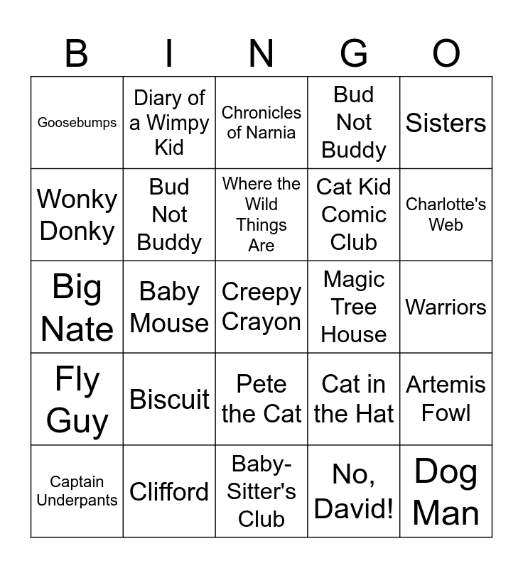 ⚠ This card has duplicate items: No, David! (2), Clifford (2), Bud Not Buddy (2), Warriors (2), Henry and Mudge (2)