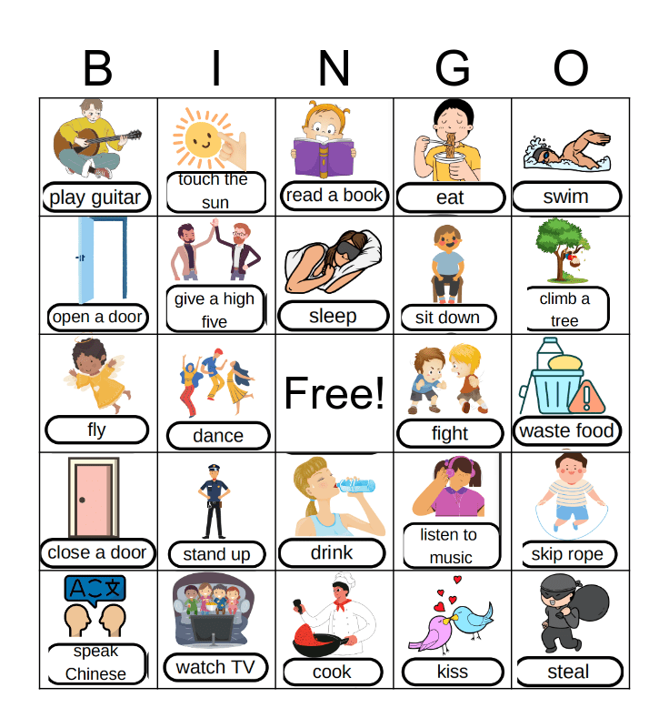 This bingo card has 31 images and a free space.